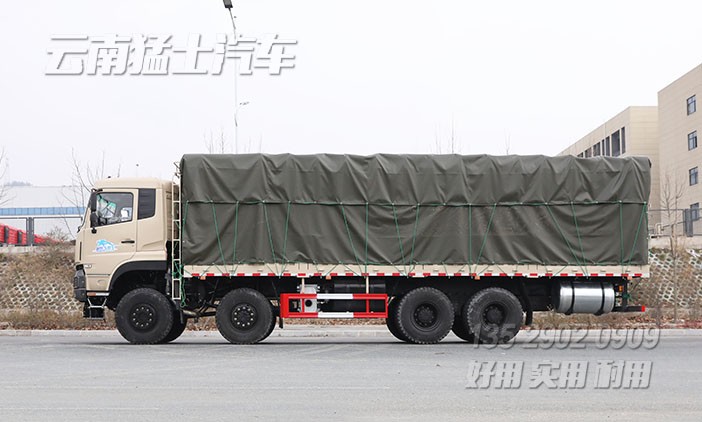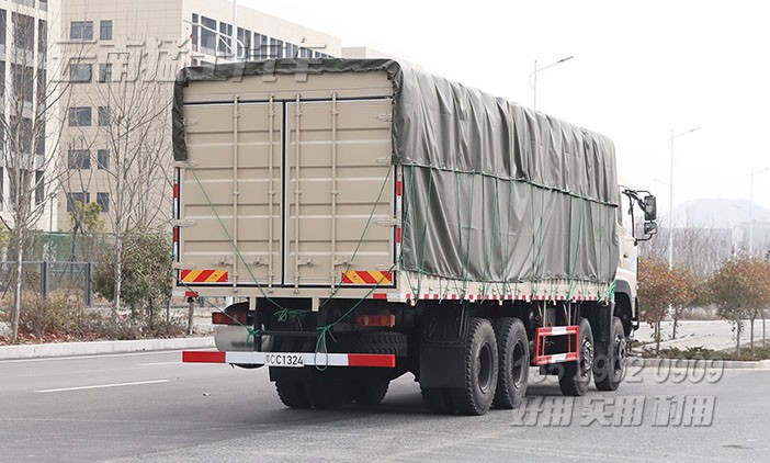 東風(fēng)前四后八倉(cāng)欄車,用于運(yùn)輸牛羊畜牧、鮮果蔬菜、木材家具、也可加裝雙層舍棚用來運(yùn)輸家禽。為方便長(zhǎng)期在越野道路行駛,該車配備了拖車鉤、絞盤、剎車降溫水箱、行李架。