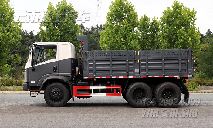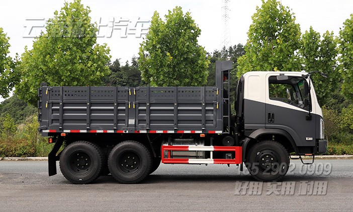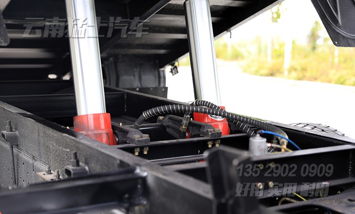 東風(fēng)2.5噸輕型自卸車(chē)采用EQ240同款底盤(pán),有著出色的越野性能。貨箱采用五開(kāi)門(mén)結(jié)構(gòu),中置頂雙液壓油缸舉升,左右邊板可向下翻開(kāi),或向前方帶有爬梯,側(cè)邊裝有剎車(chē)將溫水箱,方便承載重物長(zhǎng)途運(yùn)輸。