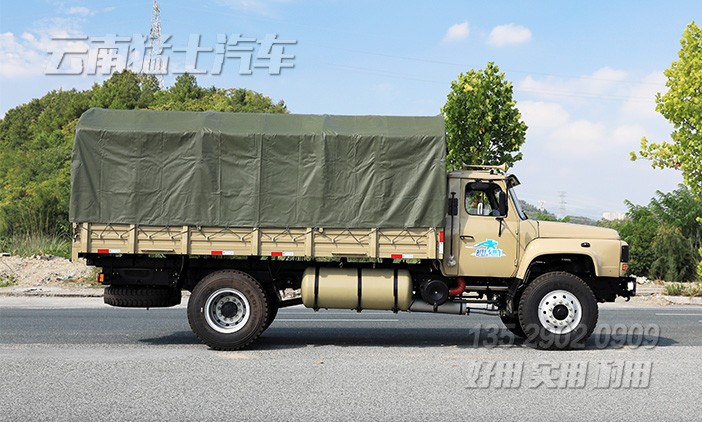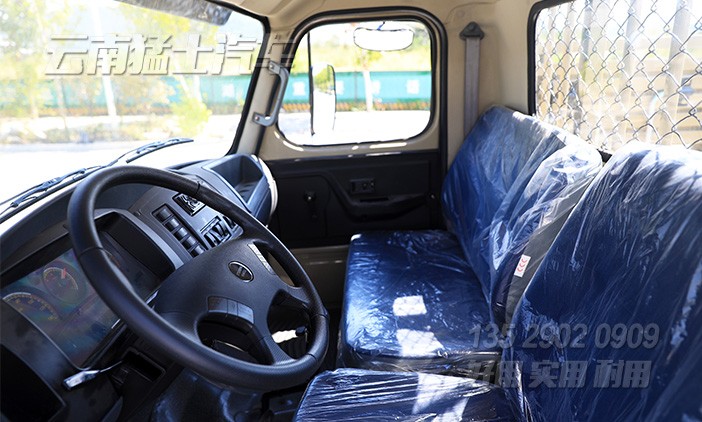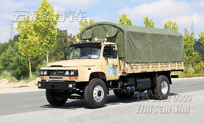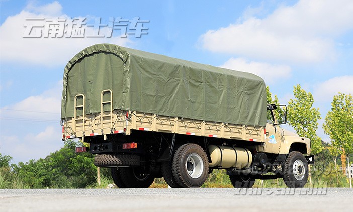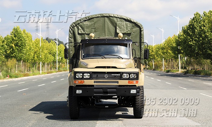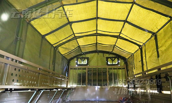 東風(fēng)4*2尖頭載貨汽車采用康明斯190馬力發(fā)動機(jī),該車貨箱內(nèi)部帶有折疊座椅,隨車裝有一套篷布篷桿,可以載人拉貨。