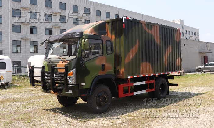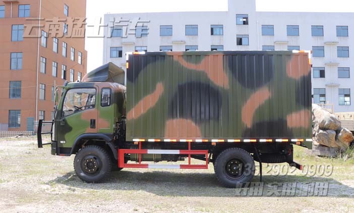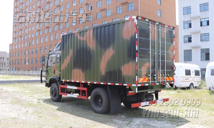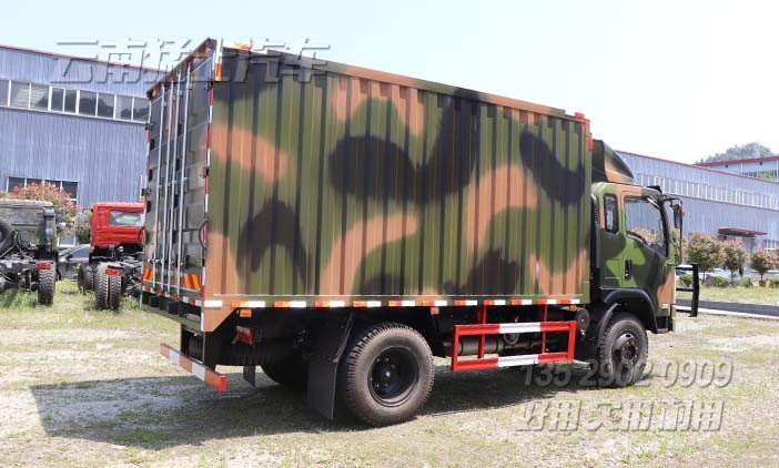 四驅(qū)D912越野廂式車采用東風(fēng)D912平頭一排半駕駛室,配備康明斯170馬力柴油發(fā)動機(jī),前橋2.7噸后橋7噸,分時(shí)四驅(qū),越野性能優(yōu)秀,適合在路況惡劣地區(qū)行駛。廂體采用瓦楞板結(jié)構(gòu),門鎖與集裝箱同款,車門屬于雙側(cè)外開門結(jié)構(gòu)。同時(shí)還可以改裝成易燃易爆危險(xiǎn)品運(yùn)輸車、移動方艙車、旅居車、移動辦公車等專用車型。