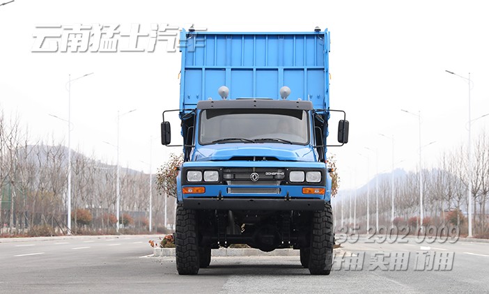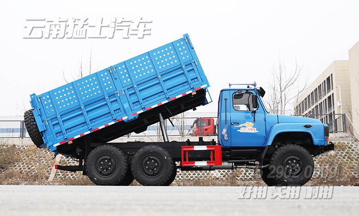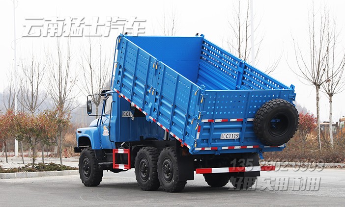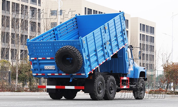 東風6×6尖頭車平板自卸車,全驅(qū)結(jié)構(gòu),三根3.1噸驅(qū)動橋,可以承載3.5噸貨物。