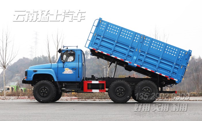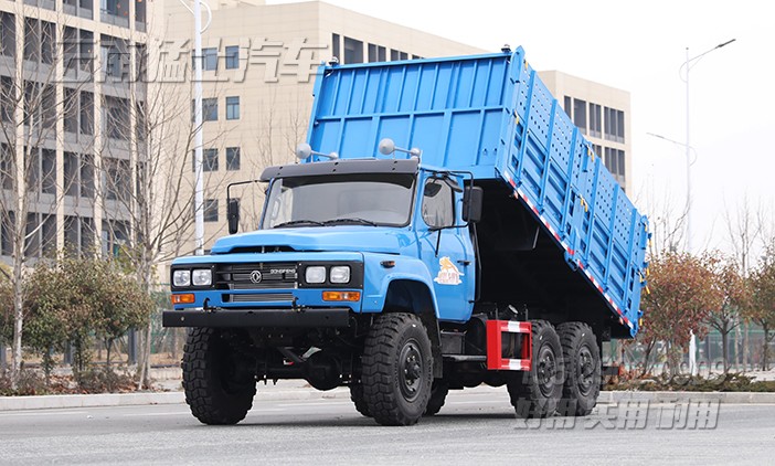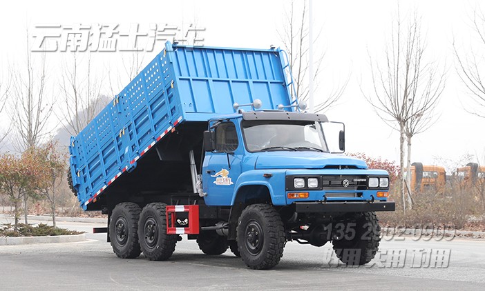東風6×6尖頭平板自卸車_全驅(qū)三橋翻斗運輸車_出口型翻斗卡車改裝