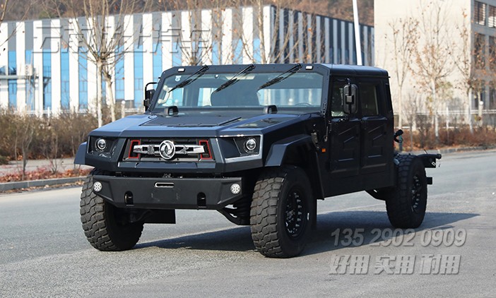東風(fēng)四驅(qū)雙排硬頂M50越野底盤,適合改裝成搶修車、醫(yī)療車、皮卡車等各類越野專用車,底盤裝有電動(dòng)絞盤、雙油箱、中央充放氣功能,可以在惡劣路段下正常行駛。