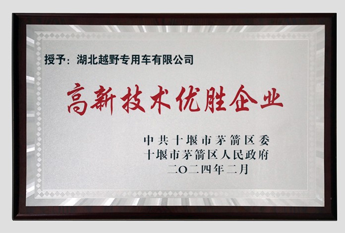 我公司旗下湖北越野專用車有限公司經(jīng)市領(lǐng)導長期全方位的考察,認為我公司符合“高新技術(shù)優(yōu)勝企業(yè)”的標準,并給予頒發(fā)證書。