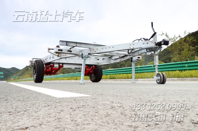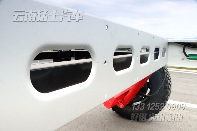 整套底盤采用510汽車大梁缸,既保證強(qiáng)度又保證韌性。所有的工藝孔,車架,橫梁,全部采用一次性沖壓成型,既減震,又增加自身強(qiáng)度。