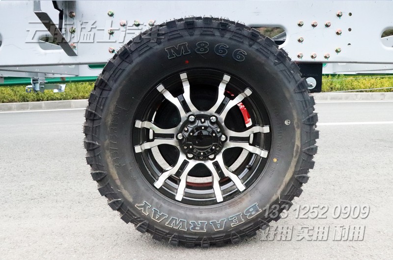 兩個(gè)鋁合金鋼圈的越野專用輪胎,適合在野外露營(yíng)使用。