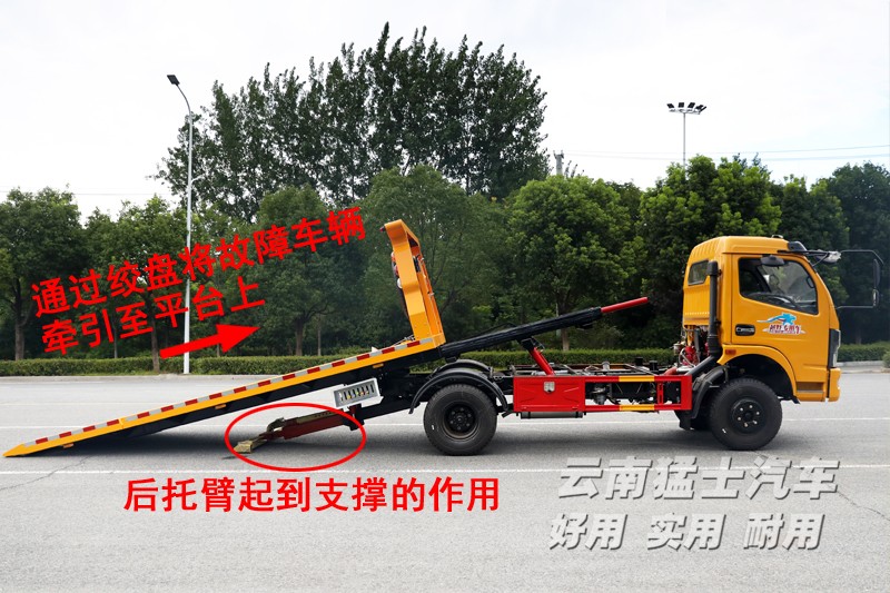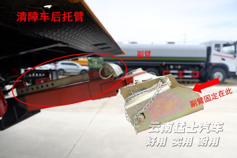 ? ? ? ? ?在使用過程中各個操作桿需要相互調節(jié)使用。 操作完成后絞盤和清障平臺復位,使用捆綁帶和駐車楔將平臺上的故障車輛輪胎剎緊。后托臂在不使用時也需要復位,在托車狀態(tài)下行駛,托臂一定要離地。最后將離合器關閉,我們的道路清障救援車就可以行駛了。