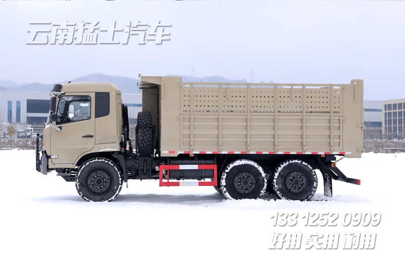 ? ? 兩款車采用同樣配置的三類底盤,三根車橋均是5噸的承重,確保了車輛的載重量,全部配備了可拆卸的蓬布和篷桿,保證了貨物安全。區(qū)別在于駕駛室的樣式和用途功能不同。一款是采用經(jīng)典的東風(fēng)153軍車駕駛室,一款是偏向商用的舒適型駕駛室,外觀雖有著差異,但是操作大同小異。用途的差異主要來(lái)源于貨箱的不同,一款采用的普通載貨車貨箱,但是在貨箱的內(nèi)部加入了折疊座椅,保留了老牌軍車的影子,不僅可以載貨也可以運(yùn)兵,適用于民用載貨和野外訓(xùn)練。另一款則是自卸車貨箱,貨箱箱板加高,有利于運(yùn)輸更大體積的貨物,貨箱可分段開啟,卸貨也更加便利,適用于拉砂石、木料等貨物。