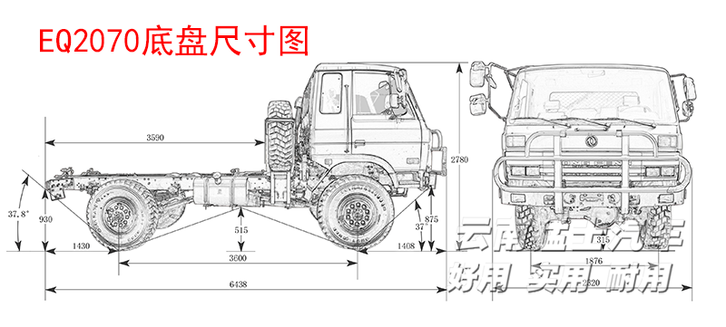 車橋采用3.5噸驅動橋,軸距3600mm,12.5R20越野輪胎。