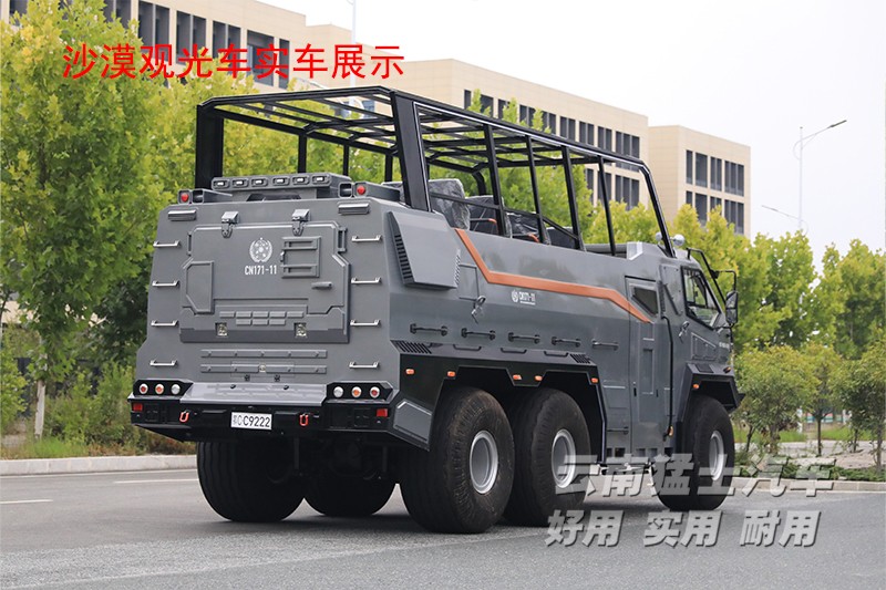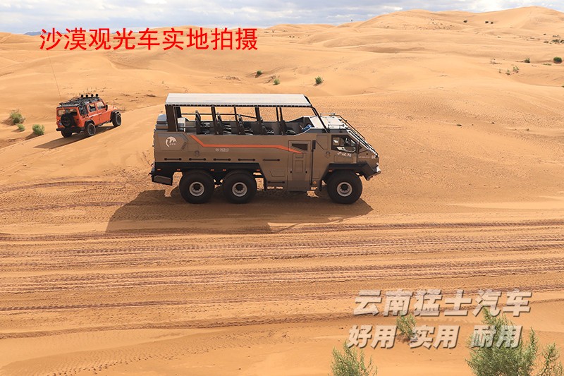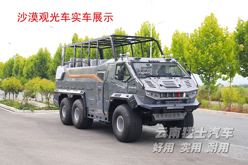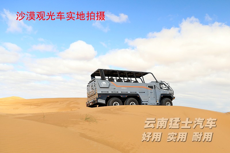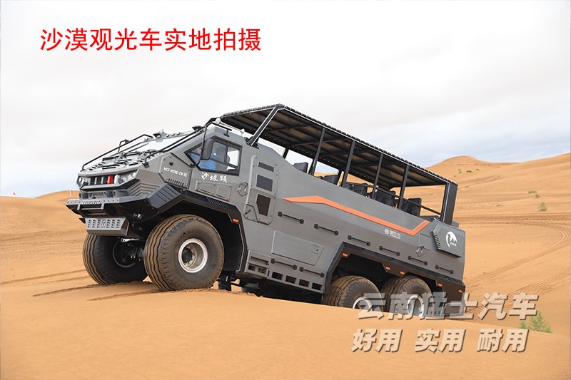 該沙漠觀光車主要用于沙漠景區(qū)內(nèi)使用,搭載游客體驗(yàn)沙場(chǎng)馳騁沖浪的沖擊感,成為景區(qū)內(nèi)一項(xiàng)驚險(xiǎn)刺激的游樂項(xiàng)目。由于該車體積龐大,游客遠(yuǎn)遠(yuǎn)便能看見這一龐然大物,吸引游客前來體驗(yàn)。