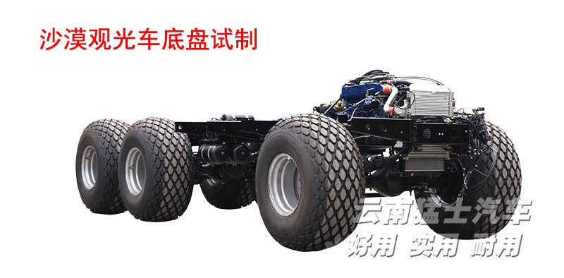 考慮到沙漠路況的復(fù)雜程度,越野性成為底盤開發(fā)中首要考慮的問題。沙漠地質(zhì)松軟,容易發(fā)生凹陷,輪胎的抓地能力、發(fā)動(dòng)機(jī)動(dòng)力、爬坡度等都是底盤的核心顧慮。最終采用了直徑1.5米的波浪紋沙漠專用輪胎,375馬力發(fā)動(dòng)機(jī)。