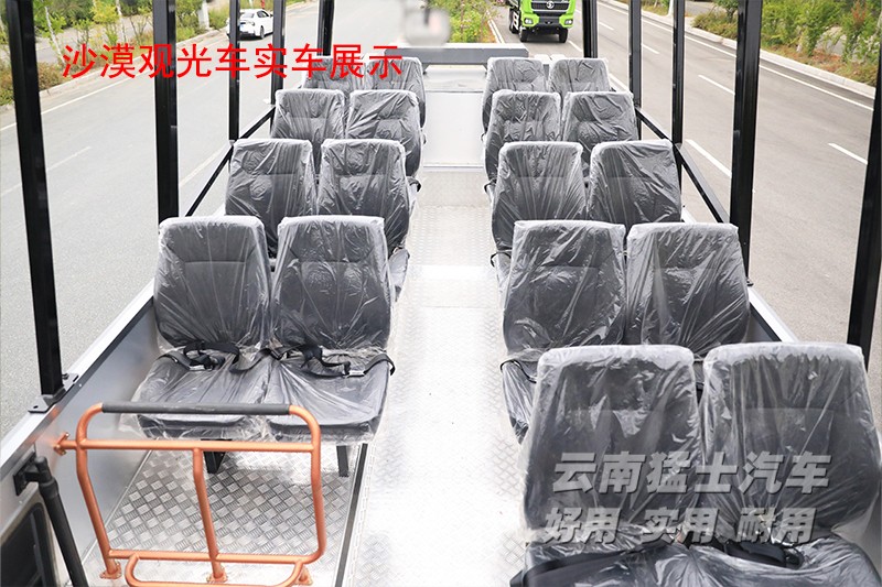 車身噴涂作業(yè)完成后將車身與底盤結(jié)合,并開始內(nèi)飾的裝修布局。為避免狹窄地區(qū)無法正常打開車門,車門采用了電動(dòng)平移開啟方式;考慮到行駛時(shí)風(fēng)沙過大,我們安裝了透明材質(zhì)的篷布,有效阻擋風(fēng)沙,同時(shí)不影響游客觀賞沙漠美景;沙漠地區(qū)空曠,行駛時(shí)噪音大,所以采用的純進(jìn)口音響,等等細(xì)節(jié)考量,最終完成車型的開發(fā)。
