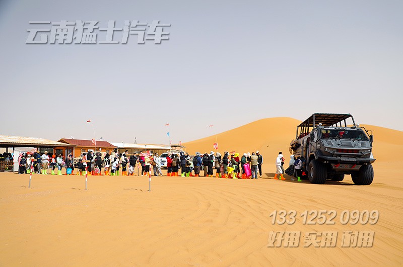 這款沙漠車體積龐大,在沙漠中別具一格,成功的吸引了游客的眼球。在沙漠中行駛時(shí),顛簸的起伏感為游客帶來沖沙的刺激感,不少游客申請多次乘坐。期間我公司也安排售后人員在各個(gè)景區(qū)考察,為景區(qū)內(nèi)的駕駛員普及沙漠車的注意事項(xiàng)和保養(yǎng)知識,同時(shí)也考察沙漠環(huán)境,為后續(xù)沙漠車的升級提供依據(jù)。