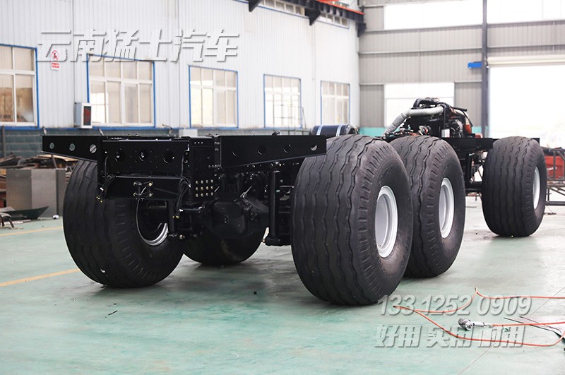 因沙漠車無法在公路上行駛,所以我們采用17.5米平板半掛車通過托運(yùn)的方式進(jìn)行運(yùn)輸。將輪胎、翻滾架打散,墊上枕木,用塑料薄膜纏繞固定在平板物流車上。